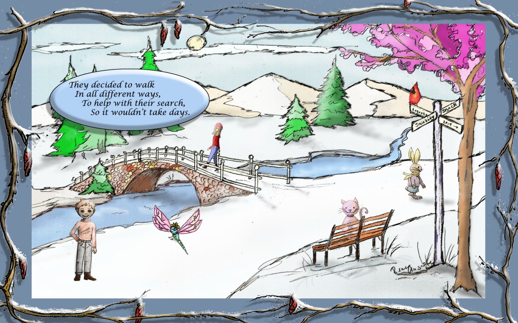 5 Friends search for their friend Spring because it is still snowing in May. They have to hunt for clues to find Spring’s location. Maybe you can help them on your adventure.
